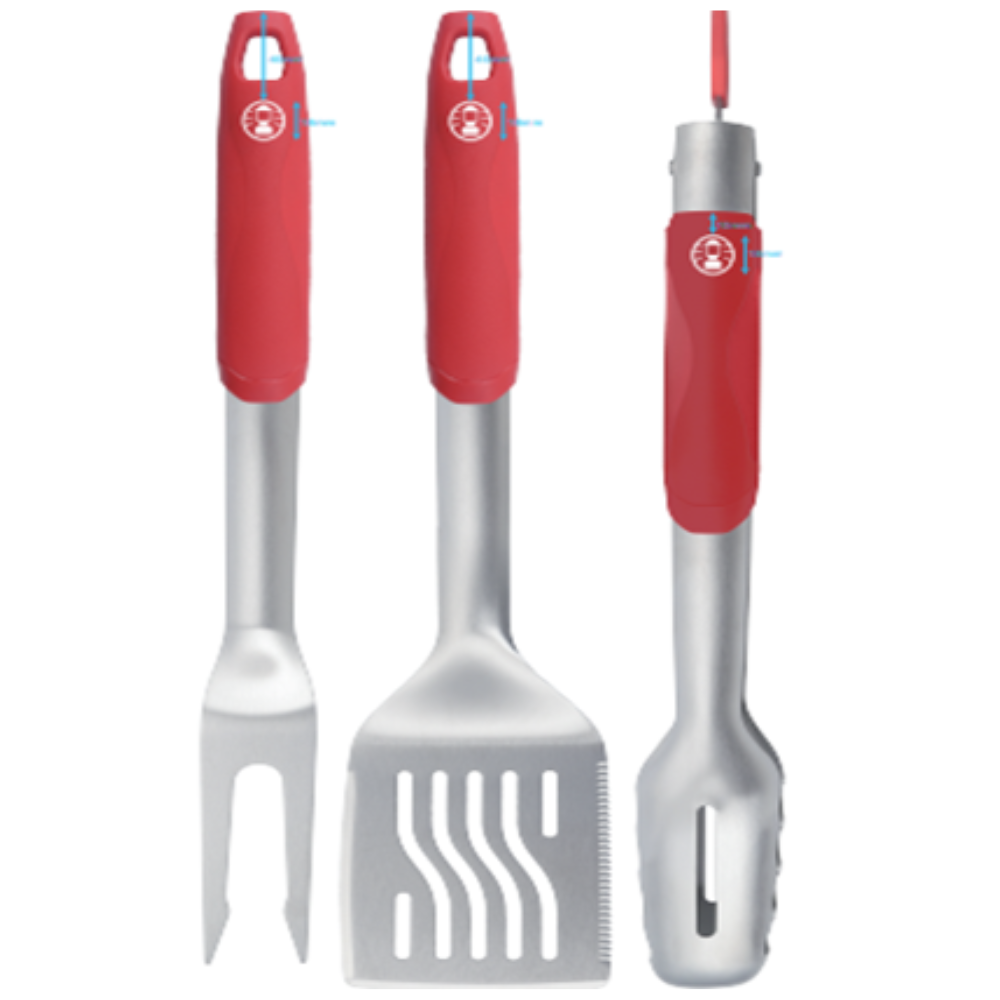 מכיל: מלקחיים, מרית, מזלג עשויים פלדת אל – חלד, ידית גומי נוחה לאחיזה אורך מלקחיים: 43.5 ס"מ, מרית: 44 ס"מ, מזלג: 42.5 ס"מ